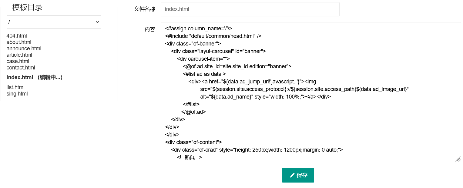 可以看到这里对文件名及文件内容都没有限制,虽然此处控制的是网页模板修改功能,但是看代码是可以通过数据包上传文件的,是一个可利用的接口