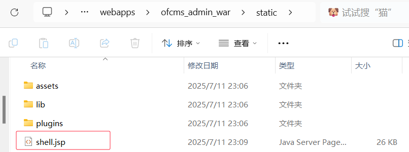 (原index.html在/tomcat/apache-tomcat-9.0.98/webapps/ofcms_admin_war/WEB-INF/page/default/目录下,static与WEB-INF文件夹在同一级)