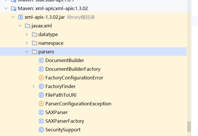 在外部库中可以看到是有解析xml文档的相关资源包的