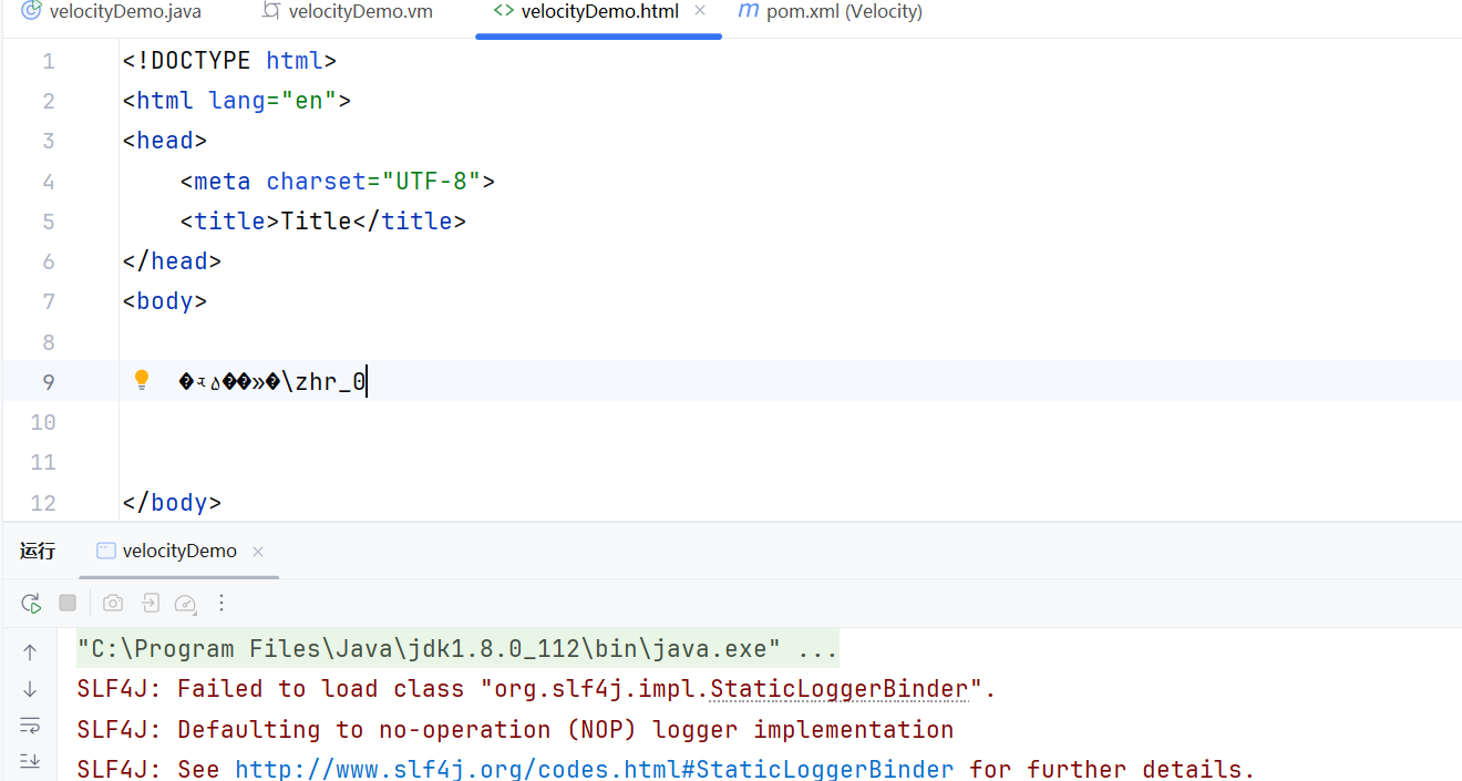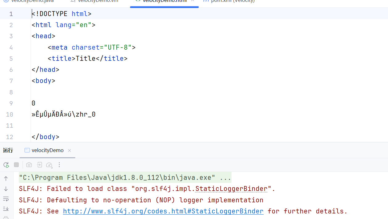 1 2 FileWriter fw = new FileWriter ("src/main/resources/velocityDemo.html" ); tpl.merge(context, fw);