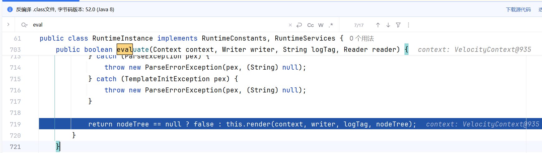 跟进eval方法,可以看到eval函数对constantValue的值做了简单的判断,判定值为空后跟进 this._eval()