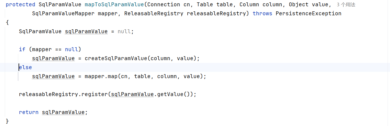 如果没有传入 mapper,使用默认的方式创建 SqlParamValue;
