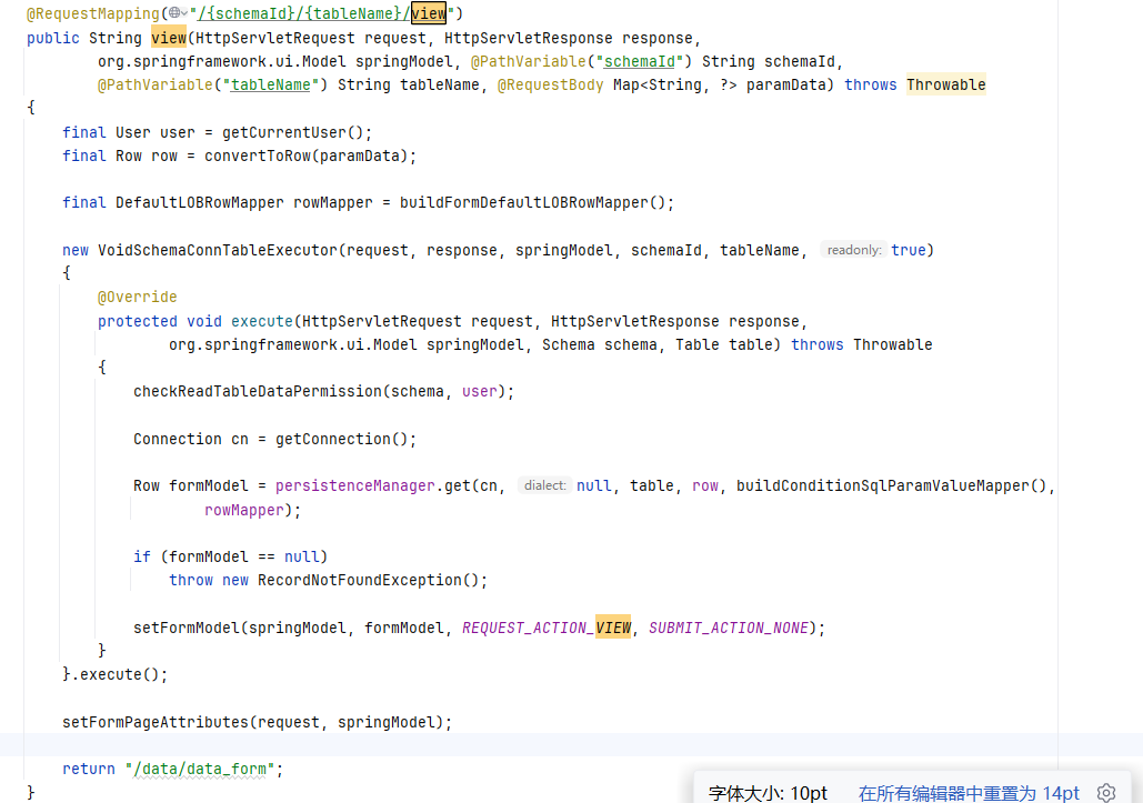 org.datagear.web.controller.DataController#view 是查看数据库表中一条记录的入口方法。其逻辑是根据传入的参数查询表,即 SELECT * FROM table WHERE paramName = paramValue。