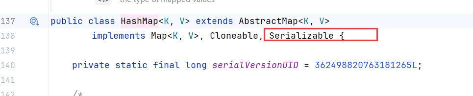 可以看到HashMap 确实继承了 Serializable 这个接口。