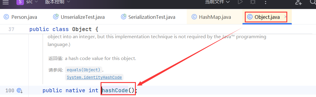 此时调用的hashCode方法是Object类中的方法