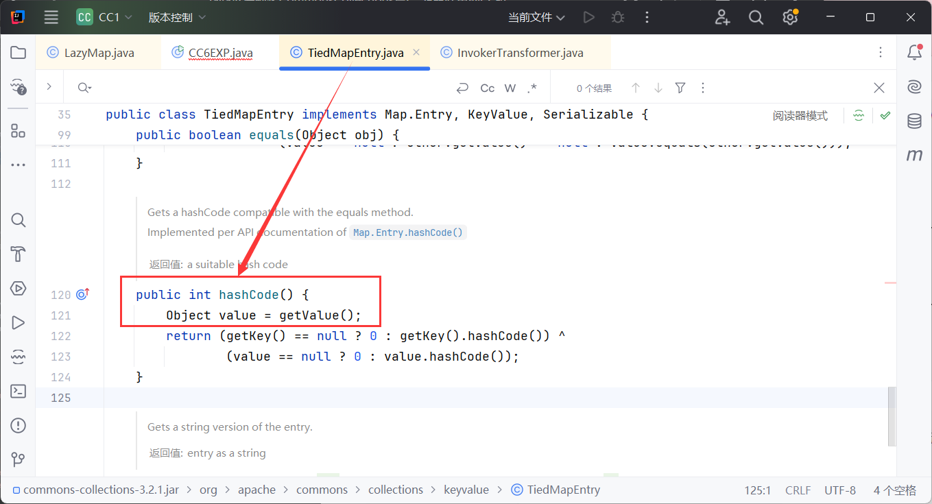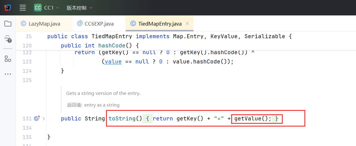 这里我们找到了TiedMapEntry 类中的 getValue() 方法
