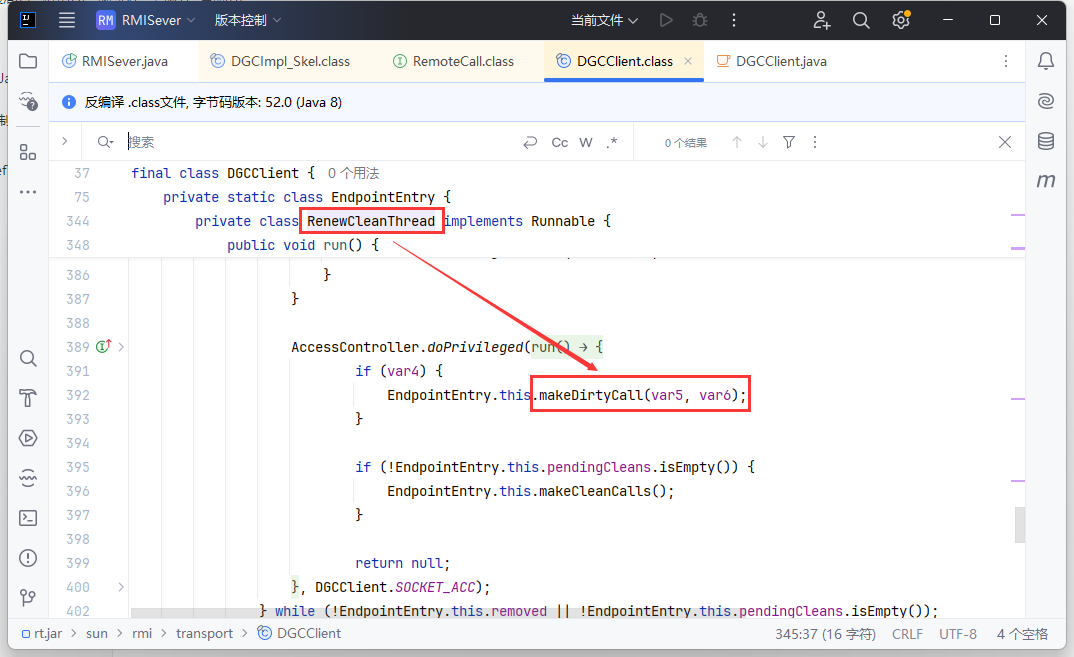 找到的是DGC这个类可以被利用,然后调用它的clean或者dirty方法去触发他的invoke方法