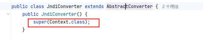 在对 JndiConverter 这个类进行反序列化的时候,会自动调用它的构造函数,而它的构造函数里面调用了它的父类。所以反序列化的时候不仅能够调用 JndiConverter 这个类,还会去调用它的父类 AbstractConverter