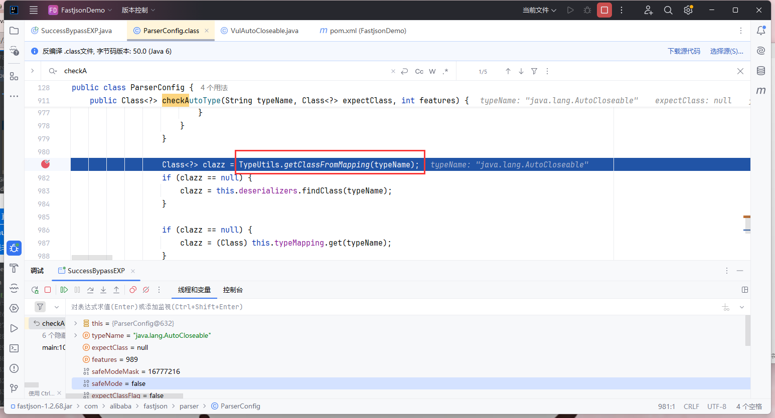 调试分析 依旧把断点下载checkAutoType处,开始调试