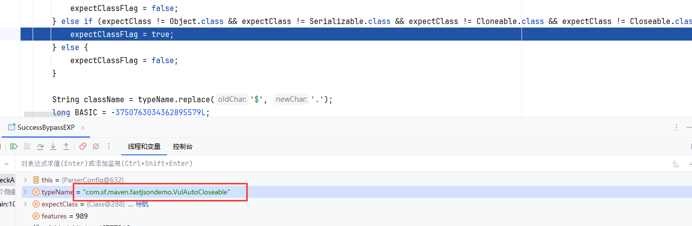 先传入某个类,其加载成功后将作为expectClass参数传入checkAutoType()函数;
