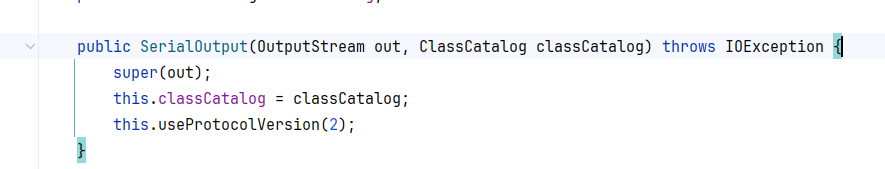 看到SerialOutput类的构造函数中是调用了父类ObjectOutputStream的有参构造函数,这就满足了前面的条件
