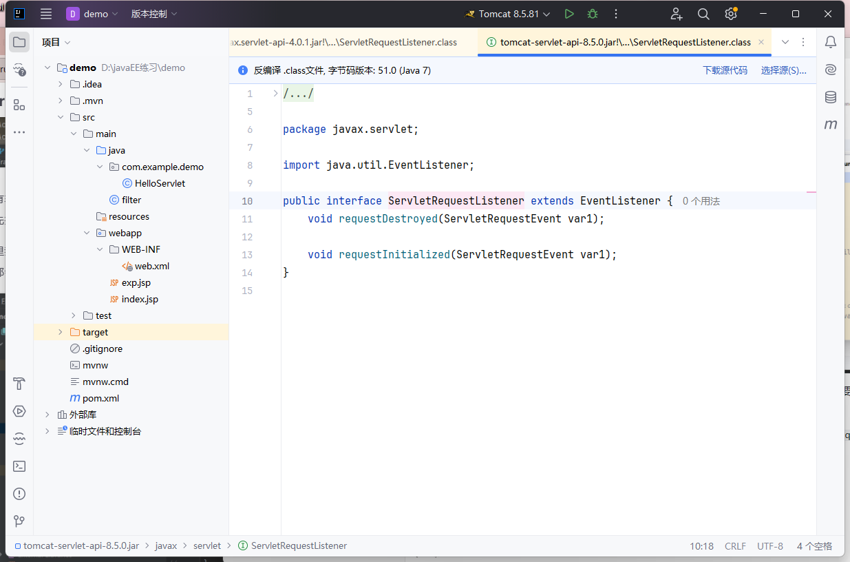 这里找到了 ServletRequestListener ,因为根据名字以及其中的 requestInitialized() 方法(初始化请求)感觉我们的发送的每个请求都会触发这个监控器