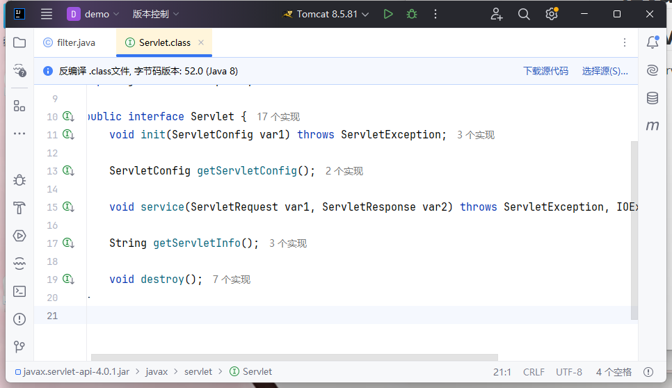 看一下servlet接口的方法有哪些