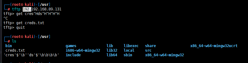 通过tftp获取到creds.txt,得到webdav的用户名和密码