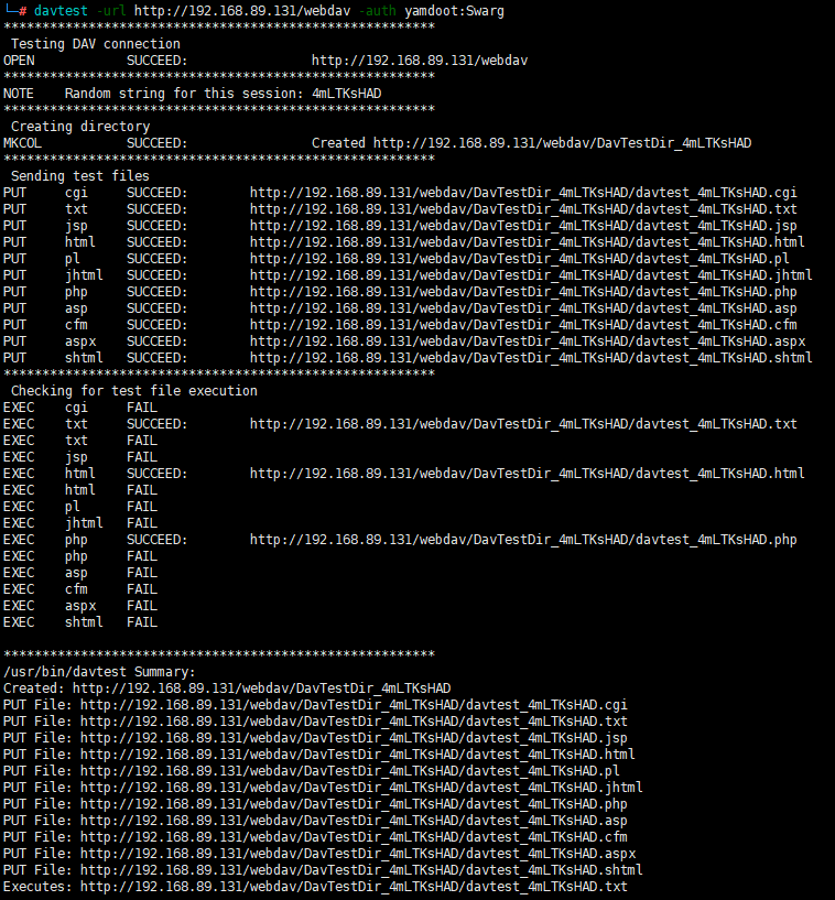 使用davtest测试可执行后缀的后门文件 -> php,html,txt