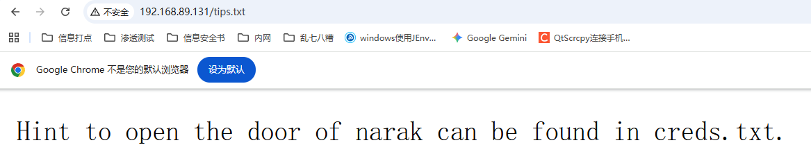 指定后缀进行目录爆破(zip,rar,txt)->找到一个txt文件,给出关键信息在creds.txt